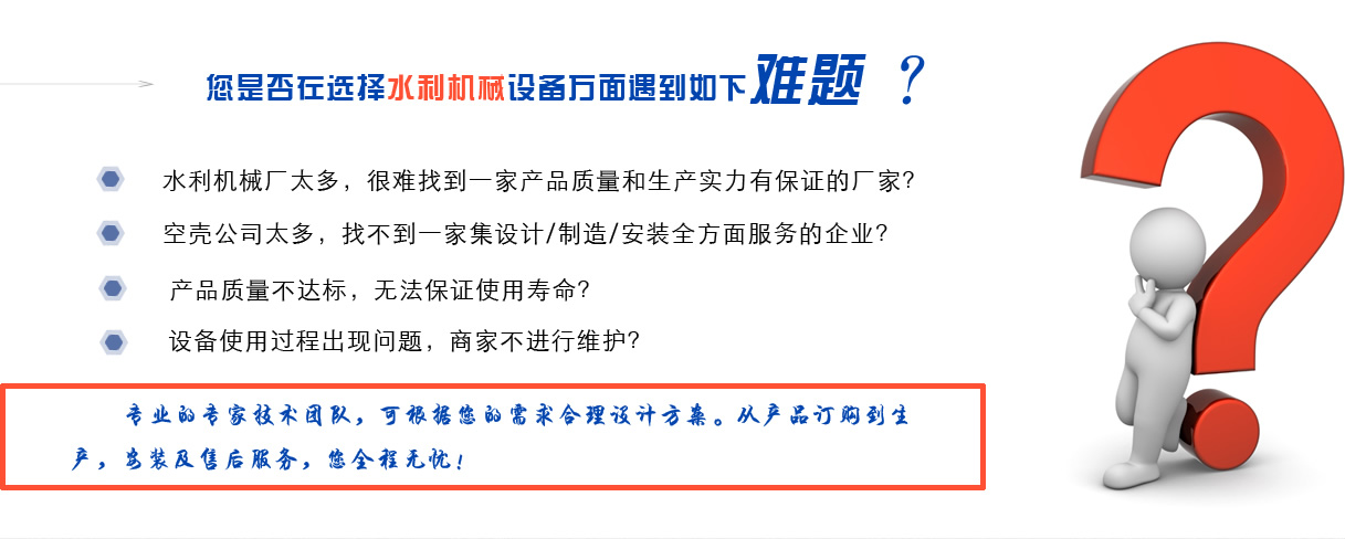 寧晉縣禹碩水利機械有限公司     寧晉縣禹碩水利機械有限公司是一家綜合生產型企業,專業從事液壓式啟閉機,固定卷揚式啟閉機,雙點吊卷揚式啟閉機,鑄鐵閘門及環保設備的專業制造,生產和安裝。具有完善的現代化管理模式,合理的產品結構,可靠的性能,確保為客戶提供優質的產品和周到的售后服務。這是一個整合銷售,制造和安裝的監管模型。水利工程機械生產綜合企業。我們公司已獲得國家頒布的液壓機械產品使用許可證。我們公司生產的產品廣泛用于河道,養殖,排灌,水電站,污水處理等水利工程。     我們的主導產品有:     1.螺桿式啟閉機3T-100T。全封閉式、手推帶鎖式0.3T-30T。螺桿側擺式0.5T-2T。螺絲手和電動手型3T-100T(單雙吊型)。     2.鑄鐵閘板,高壓鑄鐵閘板,雙面止水閘板,平面滑動鋼閘板,平面固定輪鋼閘板,銅鑲嵌鑄鐵方形閘板,圓形閘板,可調堰閘板,鑄鐵翻板閘板(防潮閘門),FRP閘板閘門,不銹鋼閘板閘門,機械閘板一體閘門,徑向閘門,停機閘,不銹鋼閘門等。     3.QPQ,QPK,QPG,QPT和QHQ型卷揚式啟閉機(單、雙點吊式)。     4.HGS旋轉式屏幕清潔劑,FHG反向式屏幕清潔劑,XGS旋轉式屏幕清潔劑,GLS高鏈式屏幕清潔劑,YZL螺旋壓力機,pls平面式屏幕等。     5.橡膠止水片651、652、653的水腫脹和其他橡膠止水片。止水橡膠包括P60,P50,P45,P35以及各種內外角,平板,橋架等。也可以根據用戶要求進行加工和定制。     我們公司的宗旨是:     “以質量求生存,以信譽求發展,以服務求效益”。今天的質量是明天的市場,企業的信譽是無形的市場,顧客的滿意是永恒的市場。以人為本創造產品,以誠信創造輝煌;質量保證,信譽至上”!